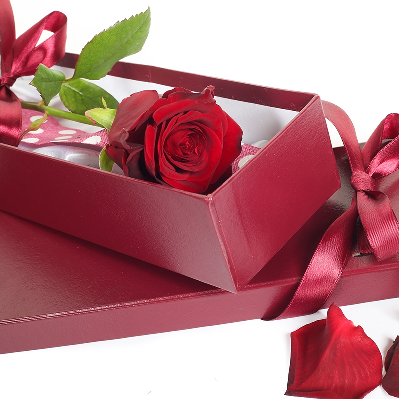 A beautiful red rose presented perfectly in a gift box. ( may vary in style ) One rose for your one love.