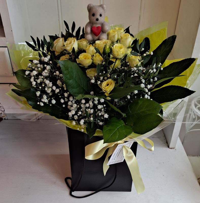 Beautiful roses with small complimentary flowers such as gypsophila, limonium or another pretty filler flower, packed in water and complimentary gift wrap. Perfect for any occasion.